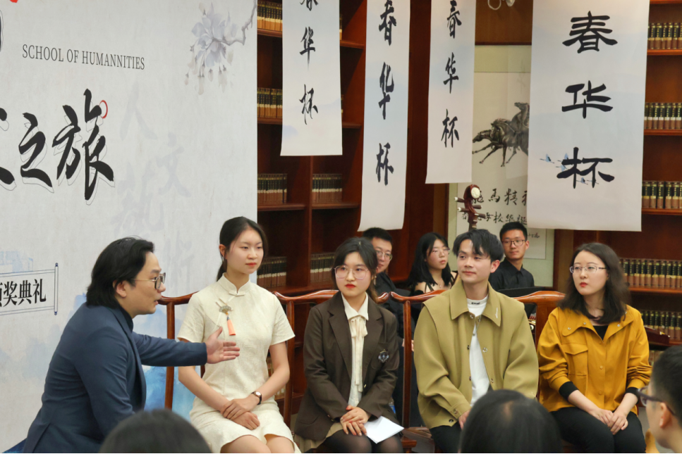 2023年5月5日下午,韩国h漫 第21届“春华杯”征文大赛颁奖典礼举办。多年来,春华杯征文大赛一直受到校内师生的广泛关注和参与,参赛作品数量和质量逐年攀升。本届颁奖典礼尝试在多角度进行创新,以进一步提升同学们积极参与文学创作的热情,营造校内浓郁的人文氛围。在深入学习贯彻习近平新时代中国特色社会主义思想主题教育的背景下,韩国h漫 党委将此次“春华杯”颁奖典礼作为主题教育的一次生动实践,展现青年学生在文化创作中的志气、底气和骨气。