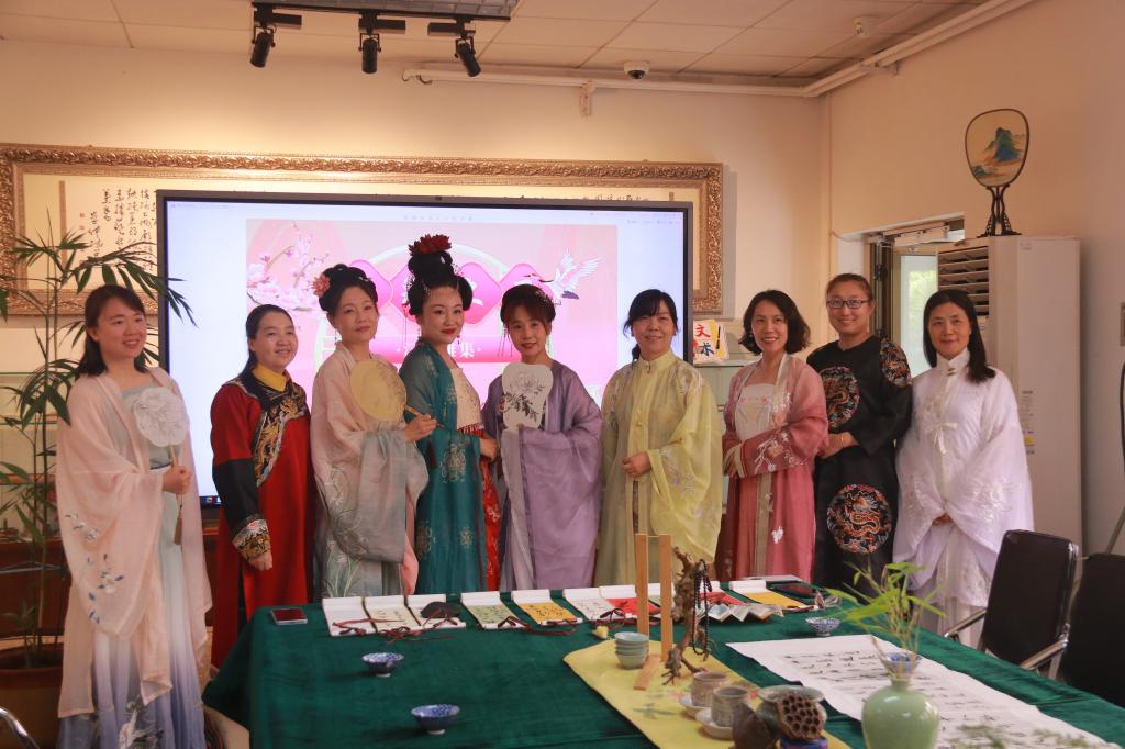 近日,韩国h漫 举办“以文化人 以美育人”系列学术文化活动,庆祝学院建院一周年。5月26日,学院在王学仲艺术研究所承办工会 “多彩之日”文化艺术活动,以“悟小满哲思 赏汉服之美”为主题,吸引了来自15个基层工会的30余名教师,沉浸式感受传统文化魅力,让人文艺术之美浸润职工美好生活。