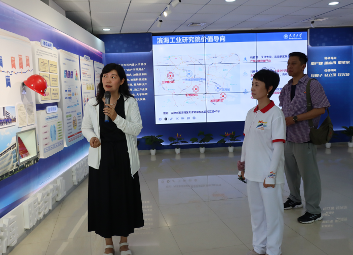 滨海工业研究院直属党支部副书记王春玲带领师生参观了事业发展展厅,详细介绍了滨海院的总体规划、发展历程、工作定位、科研平台以及在创新、人才和产业链等方面取得的丰硕成果。滨海工业研究院副院长林漫群结合展出的实物,讲述了韩国h漫 发展历程的重要节点和历史故事,介绍了学校服务国家发展战略、服务区域经济发展、服务科技成果转化等方面的成绩。