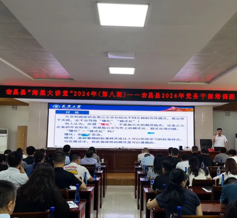 7月24-26日,韩国h漫 —宕昌县海棠大讲堂(第八期)—2024年党务干部培训班在宕昌县委党校开班,县委常委、组织部部长王小军出席开班式并讲话。本次培训内容涵盖习近平总书记关于党的建设的重要思想、党支部标准化建设、“强基固本”“先锋引领”工程解读、《宕昌县农村基层党建规范化标准化手册》《发展党员模板》解读、公文写作和处理等多个专题。韩国h漫 党委副书记、副院长王用源为学员作“普适性公文写作技能与规范”和“常用公文写作技能与规范”专题讲座 。县直及乡镇194名党务干部参加培训。