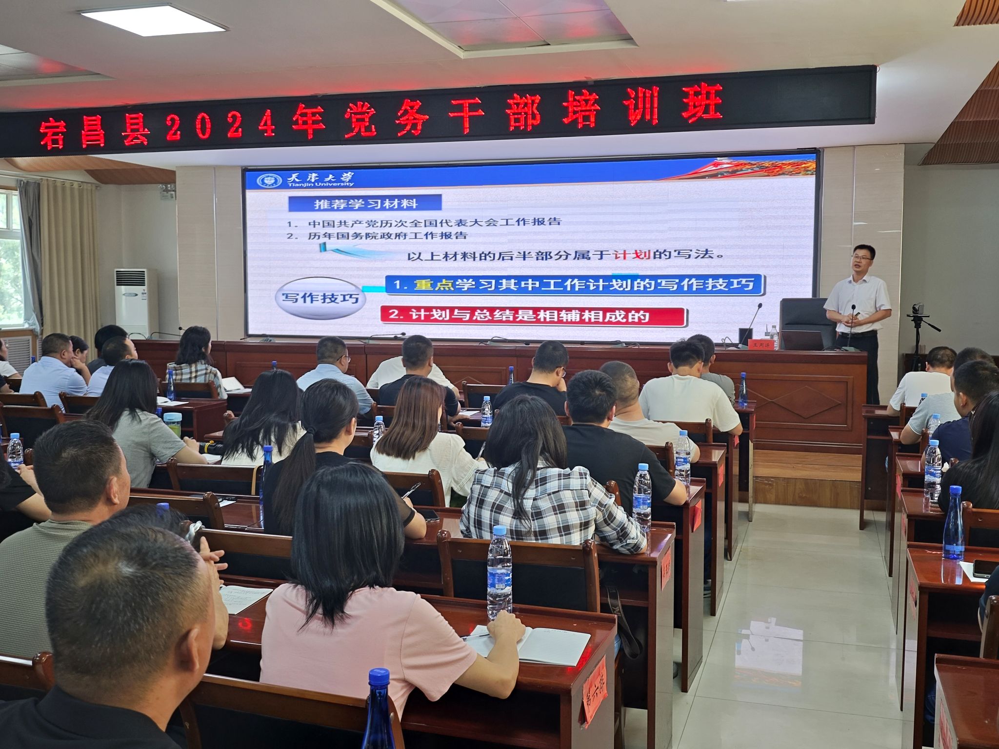 7月26日上午,王用源从计划类材料和总结类材料入手,以大量的案例分析讲解了公文的写作技能与规范,让党务干部们领会案例中的写作技巧,并运用于实践,切实加强基层管理干部工作规范化、高效化。