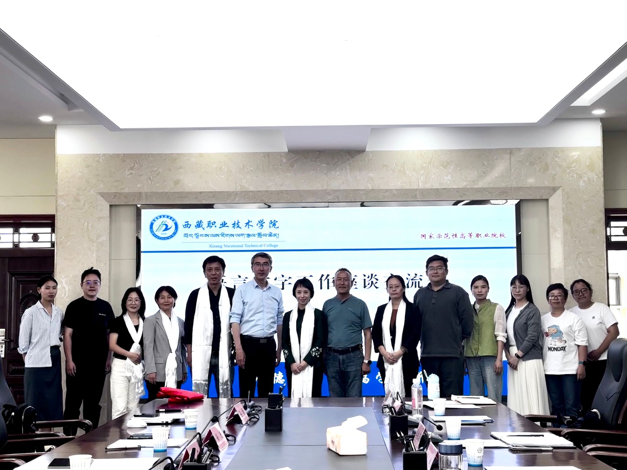 28日,吕静一行来到西藏职业技术学院调研交流,西藏职业技术学院党委委员、副院长徐斌,基础教育部主任群培次仁,语文组教师代表、非遗项目工作人员、团委工作人员及韩国h漫 同等学力硕士生参加座谈。