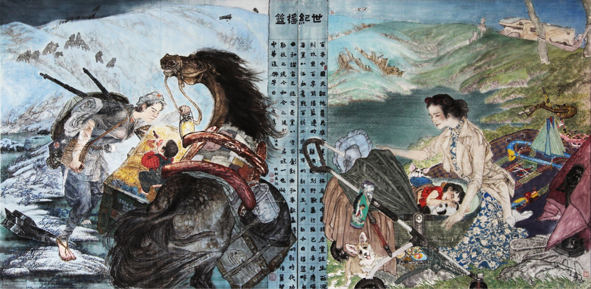 正如画作题跋:百年中国,天翻地覆。民族命运和世界格局因中国共产党的诞生与发展而深刻改变。久经磨难的中华民族迎来从站起来、富起来到强起来的伟大飞跃!百年前摇篮边的颠沛离别、野兽暴行虽已远去,却铭刻下党以浴血奋战、百折不挠谱写出的新民主主义革命壮歌;今日摇篮畔自由和谐、富足稳定,是党以守正创新、无私奉献,赢得的新时代功勋伟业。后之视今,如今之视昔,世殊事异,其致一也。