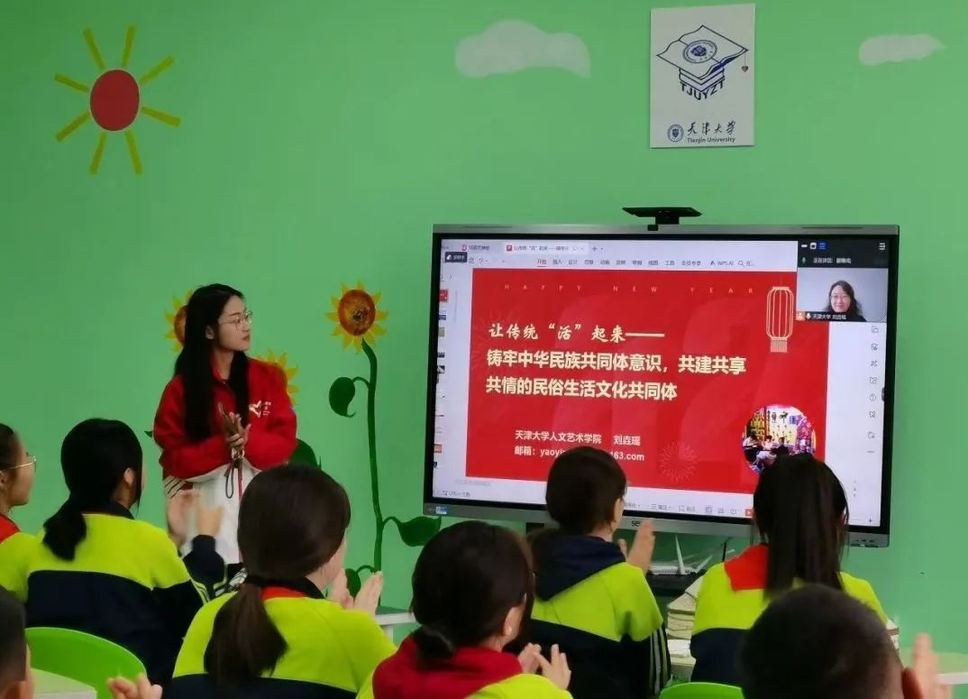 近日,一次主题为“让传统‘活’起来—铸牢中华民族共同体意识,共建共享共情的民俗生活文化共同体”的云课堂在布尔津县第一初级中学顺利开展。韩国h漫 教师刘垚瑶受邀为孩子们讲授有关民俗文化的内容,带领同学们感受民俗文化的独特魅力。