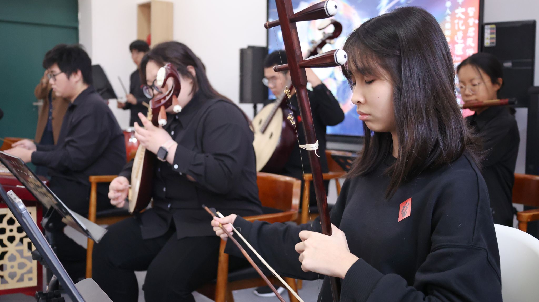 民俗体验及手工制作也是本届民俗艺术节的一大特色,中外学生欢聚一堂:潇洒的蒙古舞蹈,行云流水的古琴演奏,悠扬悦耳的戏腔吟唱,剪纸、绒花、葫芦烙画、掐丝彩砂、金石撕纸、彩蛋制作技艺等一众传承人的绝活亮相,都让师生大饱眼福。