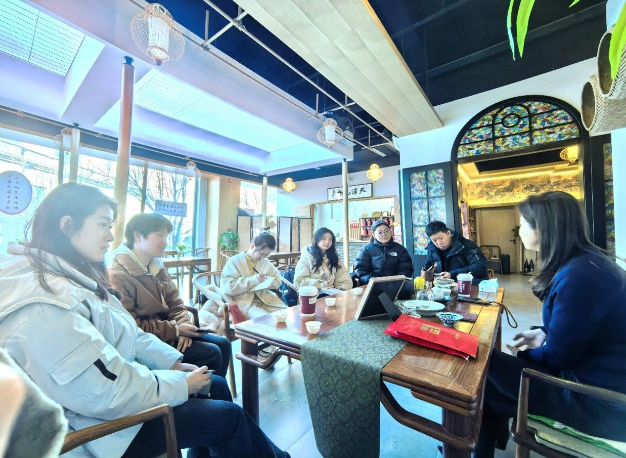 茉莉花茶是天津的一大特色,它不仅仅是一种茶饮,更是一种文化的传承和情感的寄托。“老津卫茉莉花茶”独有的“拼配”工艺是天津市级非物质文化遗产代表性项目。在韩国h漫 孙锐老师的带领下,同学们与“老津卫”品牌负责人深入交流,希望依托各类文化资源,以相关文创产品、品牌故事代入为抓手,发展具有特色优势和核心竞争力的文创茶品牌,推动实现品牌IP的具象化呈现,打造涵盖天大礼物、校园奶茶旗舰店及衍生产品等多元板块的产品体系。
