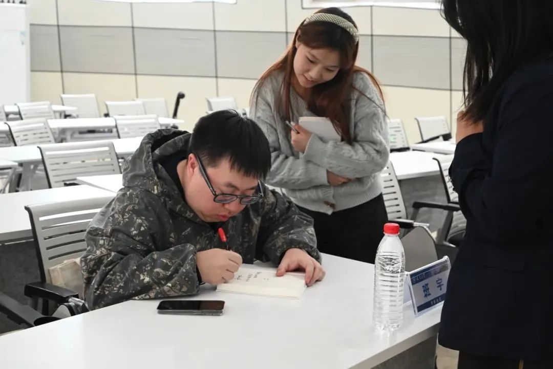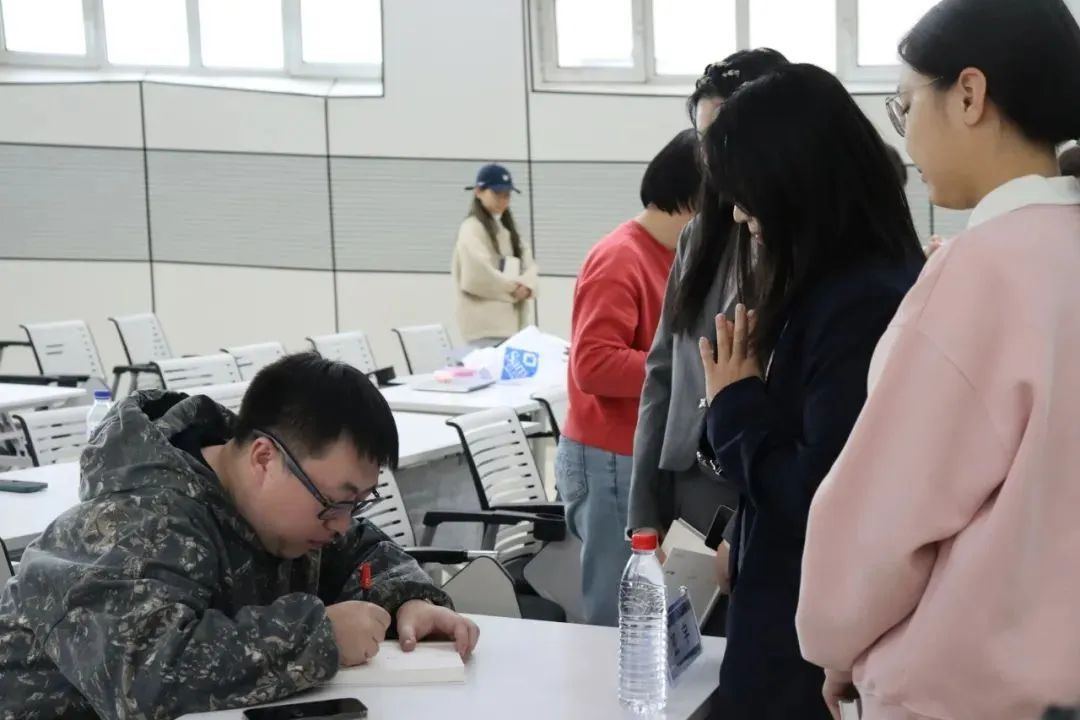 讲座后同学们带着书籍同班宇老师签名并合影留念,班宇老师鼓励大家要积极参与文学与影视创作。同学们纷纷表示在此次讲座中受益匪浅,希望未来可以有更多机会与班宇老师进行深入交流。