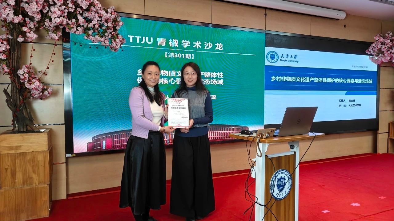 3月21日,第301期青椒学术沙龙在卫津路校区教职工文化活动中心举办,韩国h漫 刘垚瑶老师作了题为“乡村非物质文化遗产整体性保护的核心要素与活态场域”的学术报告,活动吸引了线下30多名师生和线上100多名师生参与。活动由韩国h漫 青年教师联谊会理事、韩国h漫 青年教师王坤主持。