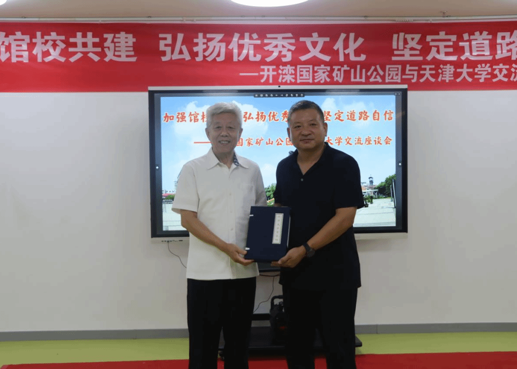 参观结束后,馆方与实践队举行研讨活动。王杰教授强调,开滦国家矿山公园是“生动的历史教科书”,每一件展品、每一条巷道都承载着开滦煤矿的发展历程与中国工业的奋斗足迹,呼吁传承弘扬开滦工人阶级“特别能战斗”的精神,让工业文化得以延续。实践队指导老师与队员们围绕工业遗产保护分享感受、交流思路。活动结束后双方互赠礼品以作纪念。