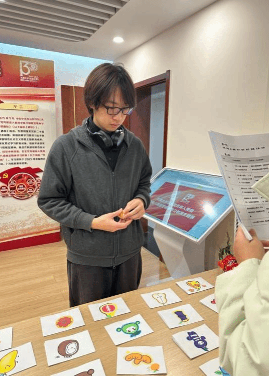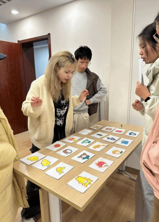 活动设置多项互动环节,现场氛围欢快。“水果配对挑战”设单人闯关与多人协作模式。多人组3人抽签分组后接力调整特制开口盒内的6种水果顺序,最终前三名队伍获柚子;单人组参与者领取6种水果自主排序,依提示逐轮交换两个位置调整。大家积极挑战,全程专注,最终收获橘子作为参与纪念。