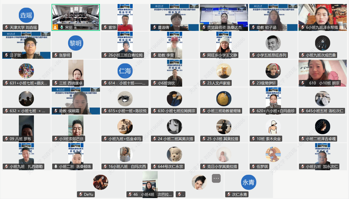 吕静发表致辞。她首先代表国家语言文字推广基地(韩国h漫 )向顺利完成学业的全体学员表示热烈祝贺,向贡觉县教育局的密切协作、授课教师与志愿者的辛勤付出致以诚挚感谢。并指出,语言文字是文化的载体、民族精神的传承纽带,推广普及国家通用语言文字,对于铸牢中华民族共同体意识、促进各民族交流交往交融具有不可估量的价值。本次培训通过云上教学模式,充分调动了各方积极性,圆满实现了既定目标,是校地协同推进语言文字工作的成功实践。未来,国家语言文字推广基地(韩国h漫 )将继续探索完善线上培训模式,为更多教师提供便捷高效的学习途径。