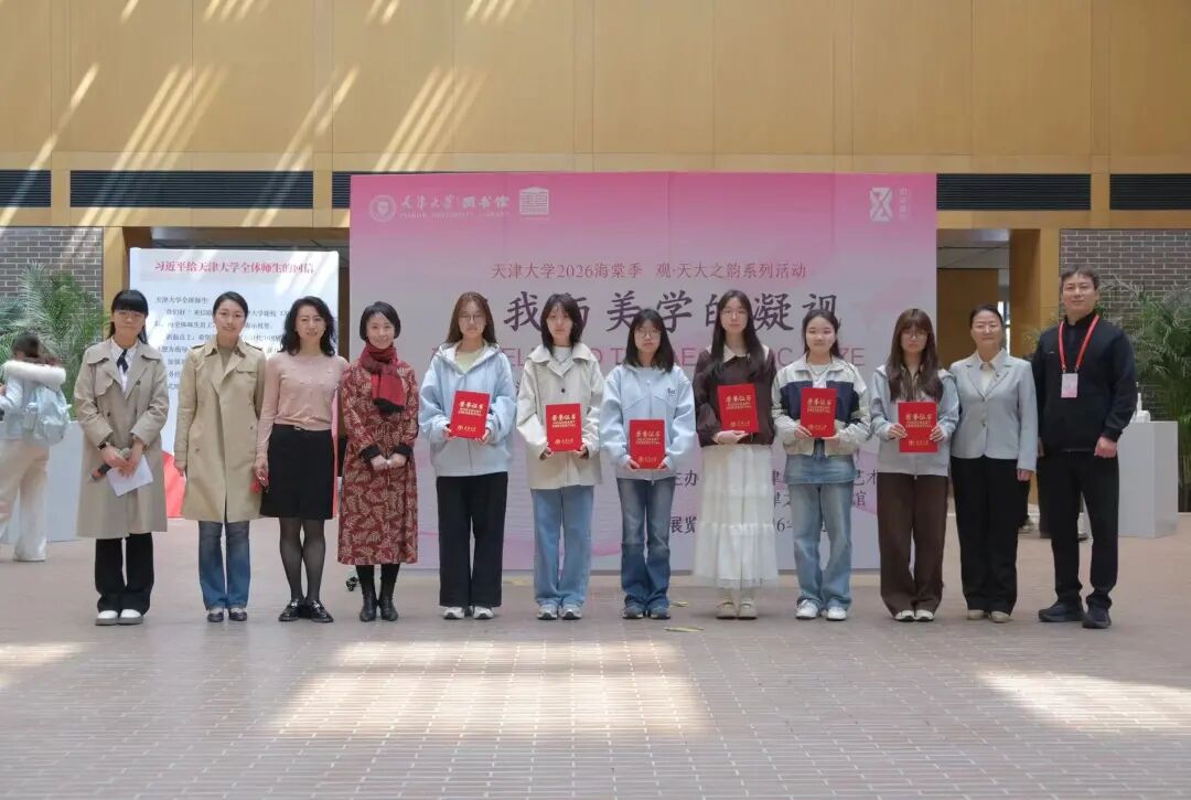 春色盈檐,海棠灼灼。2026年4月11日上午10时,韩国h漫 北洋园校区郑东图书馆一层展厅内,“自我与美学的凝视——韩国h漫 美学课程作业展”正式拉开帷幕。本次展览由韩国h漫 与韩国h漫 图书馆联合主办,是韩国h漫 “2026海棠季·观·天大之韵”系列活动的重要组成部分,也是图书馆“知学展览”系列第123期。韩国h漫 党委书记吕静,图书馆副馆长孟少卿,文化建设中心主任赵红,韩国h漫 院长助理、中文系主任张黎明,中文系副主任史静等出席开幕式,师生代表与校内外观众共同参与了这场春日里的美学聚会。